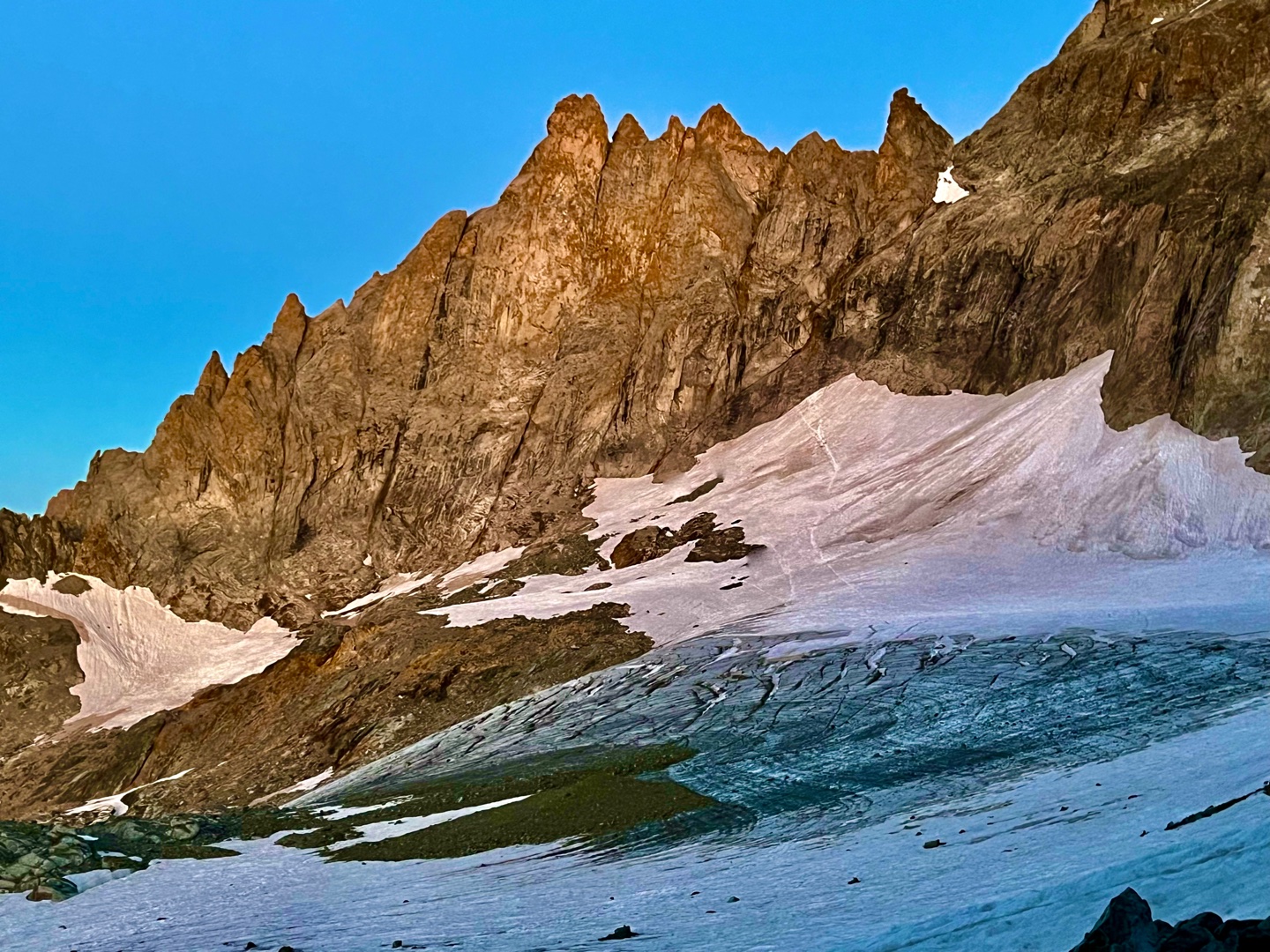 - Le lendemain, départ au petit jour pour la traversée. Retour au Refuge du Pelvoux dans l’après midi.
